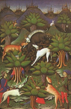 Одно из многочисленных изображений собаки. Репродукция иллюстрации к трактату XV в. о различных видах охоты.