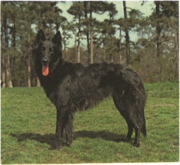Происхождение. Бельгийские овчарки существуют уже несколько веков, но эта порода в сегодняшнем понимании слова была определена в 1891 г. профессором Бельгийского института ветеринарных наук Ройлем. Он выделил три основные разновидности: длинношерстная, короткошерстная и жесткошерстная. Позже, в 1907 г., было решено, что длинношерстная разновидность должна иметь черный окрас, короткошерстная - палевый с угольными подпалинами, жесткошерстная - пепельно-серый. Грюнендаль, длинношерстная, со сплошным черным окрасом бельгийская овчарка, была выведена Николасом Розом, жившим в местечке Грюнендаль, в нескольких километрах от Брюсселя.