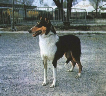 Описание. Как и длинношерстная, короткошерстная колли (кобели и суки) должна быть 56-66 см ростом и весом от 23 до 34 кг. Глаза косые, миндалевидные. Уши острые и наклонены вперед. Хвост опущен. Шерсть: в отличие от длинношерстных колли, их шерсть не более 2 см длиной.