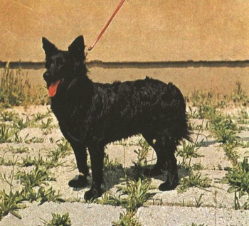 Описание. Рост от 40 до 50 см. Вес 14-20 кг. Голова несколько утонченная, конической формы, около 20 см длиной. Глаза миндалевидные, каштановые или черные, живые. Уши треугольные, стоячие. Хвост может высоко подниматься, но опущен, когда собака спокойна. Допускается купирование до длины 4 см. Шерсть, которая на спине достигает длины 7-14 см, очень короткая на скулах и вокруг ушей. Цвет полностью черный, допускаются белые пятна.