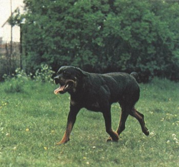 Происхождение. Вероятно, ротвейлер - потомок итальянского мастифа. В средние века собаки этой породы помогали пастухам. Ротвейлер был выведен в немецком городе Ротвайль, в Вюртемберге. К началу XIX в. эта порода практически исчезла и лишь в начале XX в. благодаря энтузиазму штуттгартских собаководов вновь обрела известность.