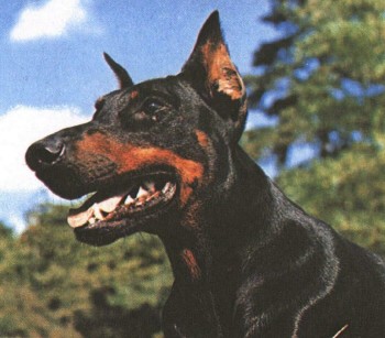 Происхождение. Сравнительно недавно появившаяся порода. Она была получена в 1860 г. в результате скрещивания немецкого дога, немецкой овчарки, ротвейлера и пинчера, а также, возможно, босерона и английского грейхаунда. Создатель этой породы - сборщик налогов по имени Луи Доберманн. Поскольку ему приходилось по долгу службы бывать в районах с высокой преступностью, Доберманн решил вывести собаку-телохранителя, способную стать надежным защитником в любой ситуации. Эта порода, получившая название от укороченной на одну букву "н" фамилии своего создателя, была впервые представлена на выставке в 1876 г. С тех пор она пользуется большим успехом у любителей собак.