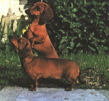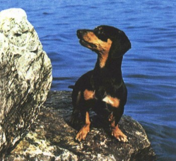 Описание. Существует три разновидности таксы: короткошерстная, жесткошерстная и длинношерстная. Каждая из этих трех разновидностей делится еще на три разновидности по размеру: нормальную - весом около 9 кг, миниатюрную - весом около 4 кг и той - весом 3,5 кг. Рост может быть от 12 до 22 см. Таксы - мускулистые, подвижные собаки с удлиненным телом и короткими конечностями. У них гордая походка и умный взгляд. Для этой породы характерна удлиненная голова, слегка выпуклый череп, выступающие дугообразные брови, длинная морда, мощные челюсти с тонкими губами, ножницеобразный или клещеобразный прикус и очень крепкие клыки (обычно у такс бывает 42 зуба). Глаза овальные, темно-рыжие или темно-коричневые, взгляд энергичный и дружелюбный. Уши подвижные, свисают вдоль щек. Грудина должна сильно выступать, а живот должен быть убран. Хвост продолжает линию спины. Шерсть короткошерстной таксы блестящая, гладкая и равномерная. Окрас: одноцветные таксы должны быть желто-коричневого или желтого цвета; двухцветные могут быть черного, коричневого или серого с ярко-каштановыми пятнами. Встречаются также крапчатые, полосатые и пятнистые таксы.