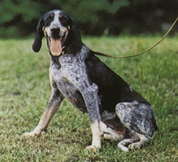Описание. Рост: от 56 до 69 см - кобель, от 51 до 64 см - сука. Вес: от 25 до 36 кг - кобель, от 20 до 29 кг - сука. У этих собак характерный для гончих экстерьер: удлиненная голова, висячие уши и хвост, который держится горизонтально. Шерсть средней длины, мягкая, гладкая, блестящая. Окрас светлый с голубыми отметинами и темными пятнами на голове и туловище.