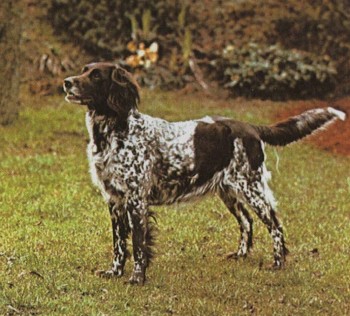 Описание. Рост от 58 до 62 см. Вес около 20 кг. У этих собак удлиненная голова и узкая морда. Глаза темные, с тяжелыми веками. Уши легкие, покрыты густой шерстью. Хвост держится горизонтально, купирован на несколько сантиметров. Шерсть гладкая. Окрас белый с черными пятнами или крапчатый с черными пятнами. Полностью черный окрас нежелателен.