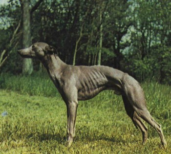 Описание. Идеальный рост 47 см - кобель и 44 см - сука. Вес: 8-12 кг - кобель, 5-9 кг - сука. У этих собак, напоминающих уменьшенного грейхаунда, длинная, тонкая голова, мощные челюсти и ножницеобразный прикус. Глаза очень живые. Уши маленькие, в форме розы. Шея элегантно изогнута, грудь широкая. Спина длинная и узкая. Живот убран. Хвост заострен. Шерсть тонкая и короткая. Окрас черный, рыжий, палевый, тигровый, белый, синевато-серый, сплошной или в различных сочетаниях.